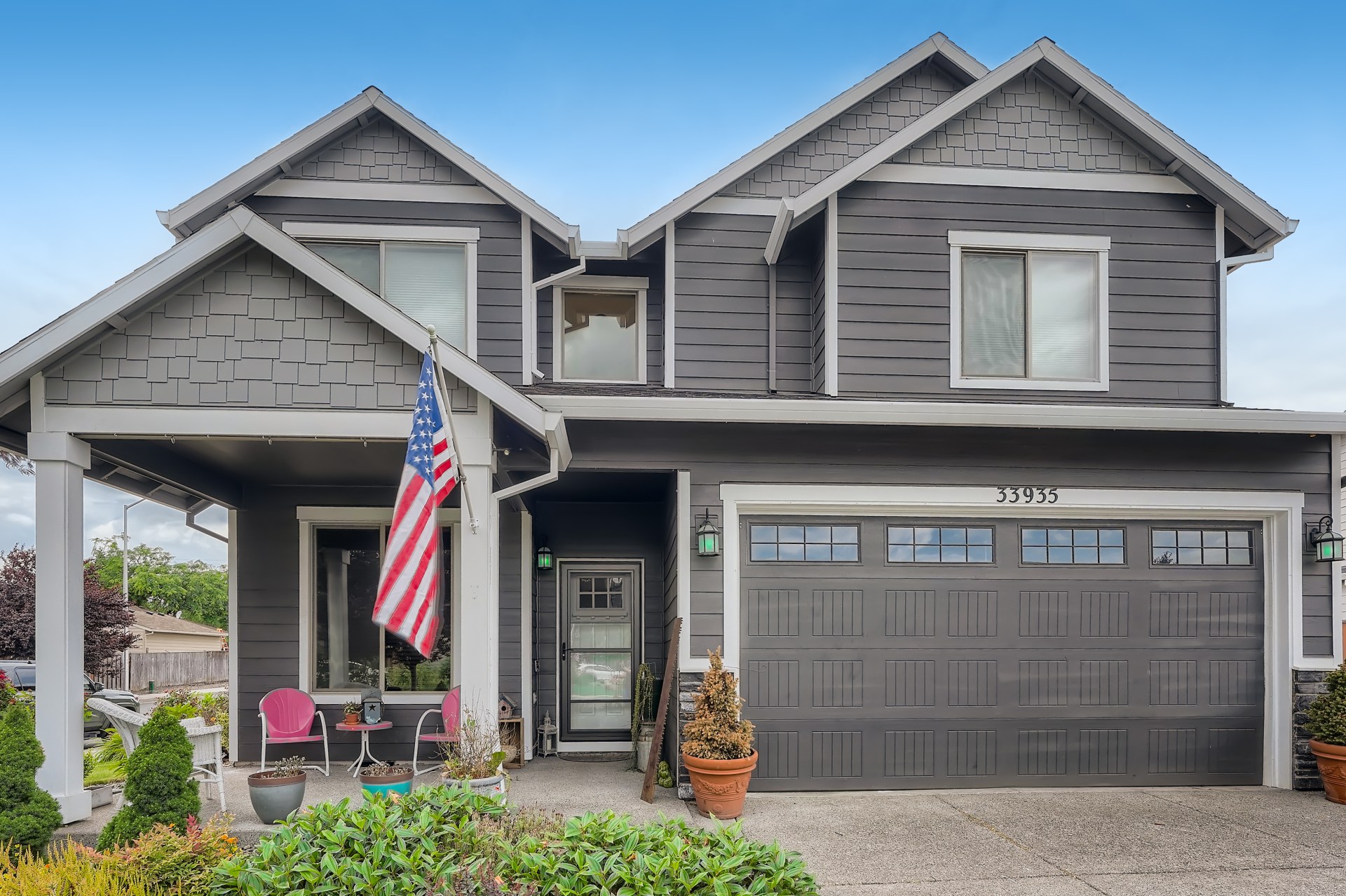 Gorgeous house on a corner lot with 2 car garage! Open concept living room with gas fireplace, & double width slider opening up to covered patio, and gazebo. Ample fenced backyard ideal for gardening & BBQs! Modern kitchen w/quartz countertops, tile backsplash, island & pantry. Additionally, the main level has a den, and a half bathroom. 4 full bedrooms, 2 full bathrooms, and laundry room all upstairs. Primary suite boasts a walk-in closet, double sink vanity & soaking tub.
